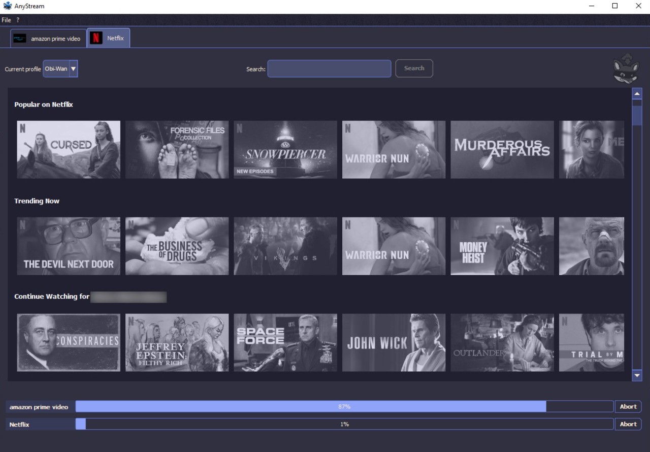 AnyStream ist ein ausgereifter Downloader von Redfox, mit dem Sie Videos von mehreren abonnementbasierten OTT-Plattformen speichern können, um sie ohne Einschränkungen und Beschränkungen herunterzuladen.