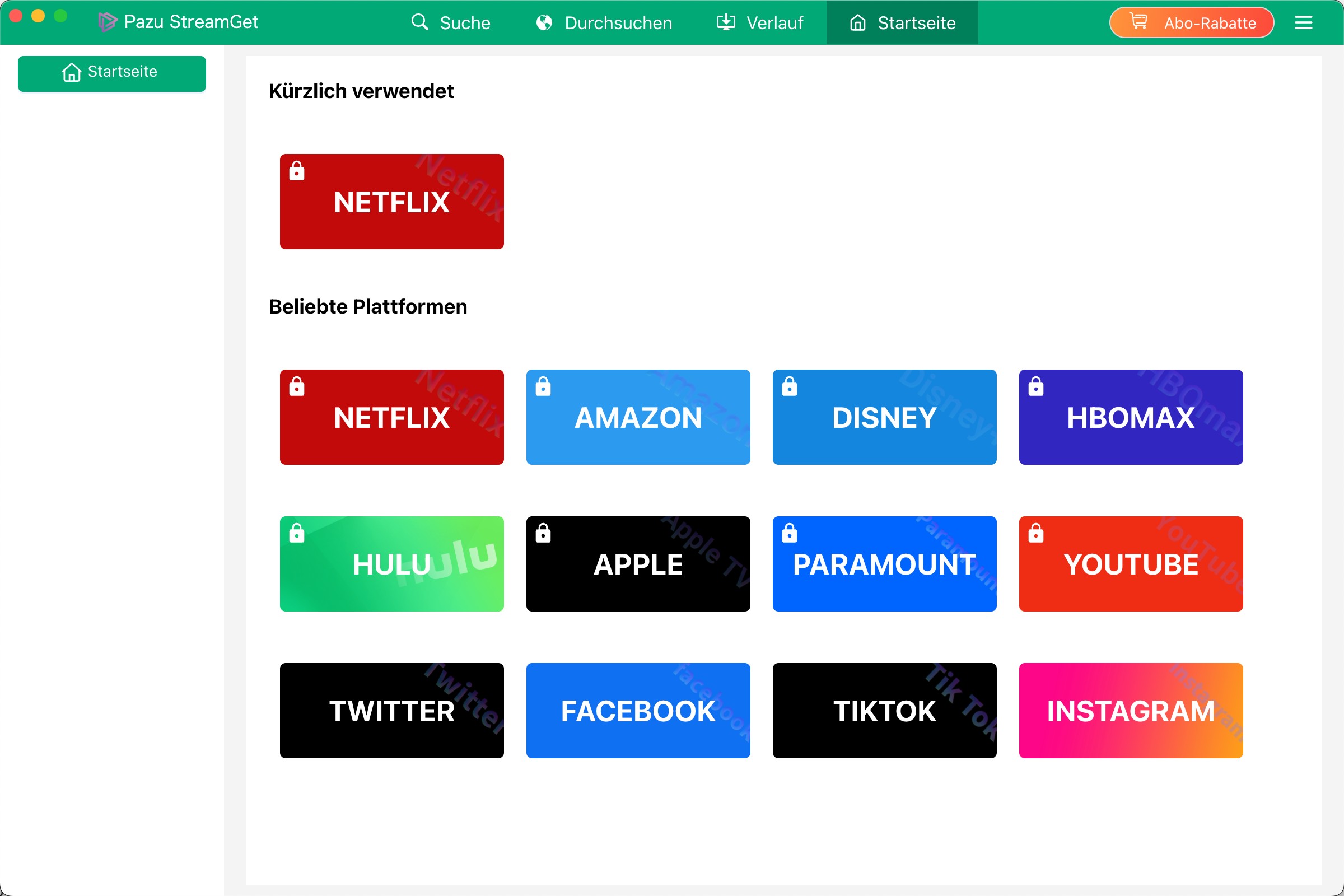- • Pazu StreamGet unterstützt Netflix plus 11 weitere Plattformen (Amazon, Disney+, HBOMax, Hulu, Apple TV+, Paramount+, YouTube, Twitter, Facebook, TikTok, Instagram)