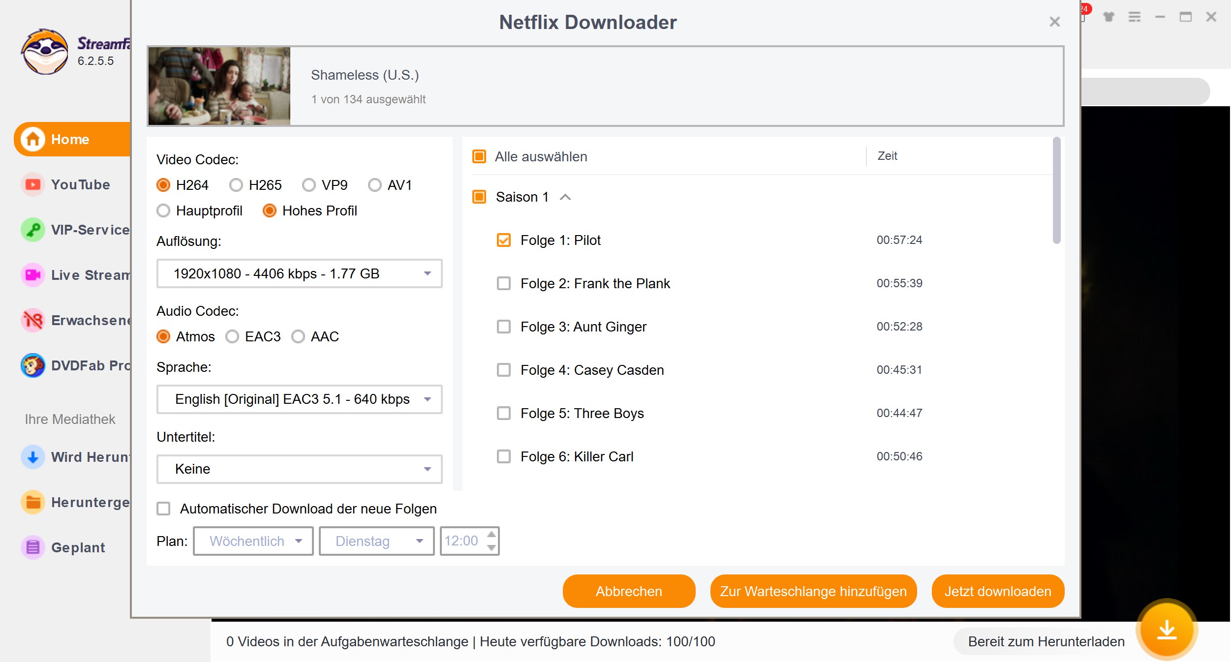 Was mich wirklich begeistert hat, war die Funktion „Batch-Download”. Ich musste nicht mehr wie bisher mühsam jede Episode einzeln speichern. Dieses Mal habe ich einfach alle 11 Staffeln auf einmal angekreuzt, auf „Start” geklickt und konnte den Computer die ganze Nacht über laufen lassen.