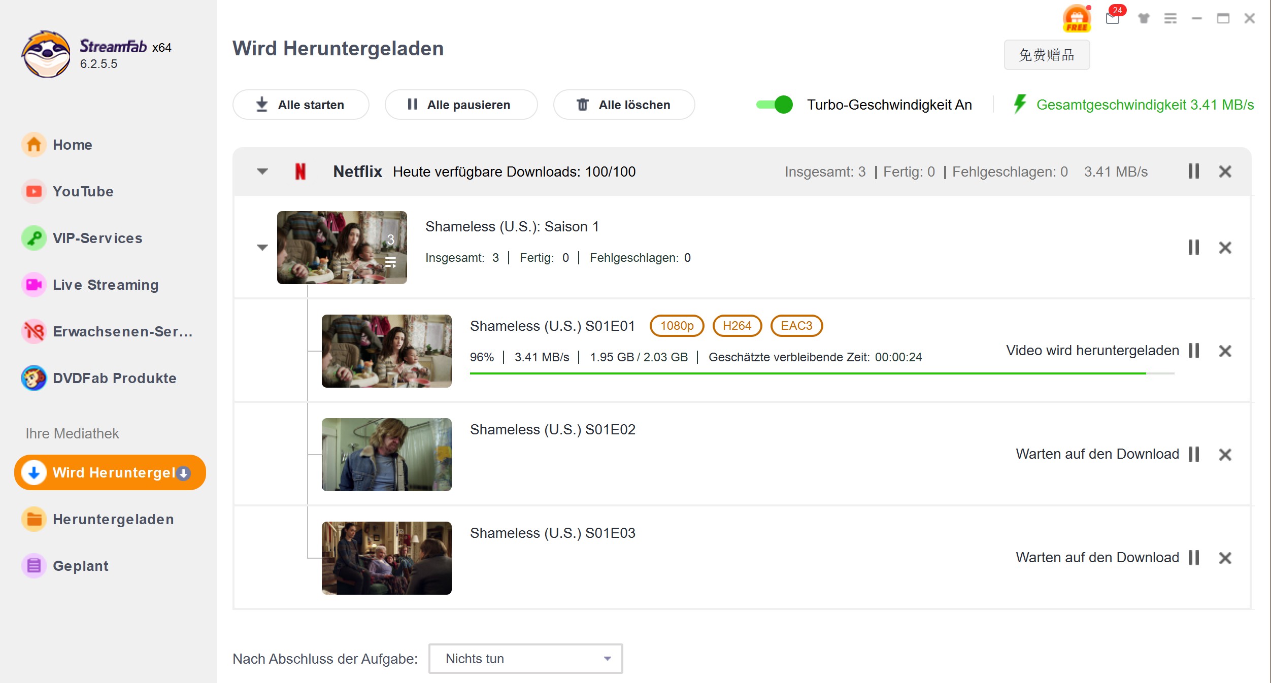 - Batch-Modus für Binge-Watcher: Was mich am meisten überrascht hat, war die Funktion „Batch-Download“. Bei anderen Programmen musste ich bisher jede Folge einzeln anklicken, was echt nervig war. Mit StreamFab schmeiß ich einfach die ganze Staffel in die Download-Warteschlange und lass den Computer die ganze Nacht arbeiten. Noch nie war es so einfach, eine Liste mit Filmen für die Feiertage zusammenzustellen.